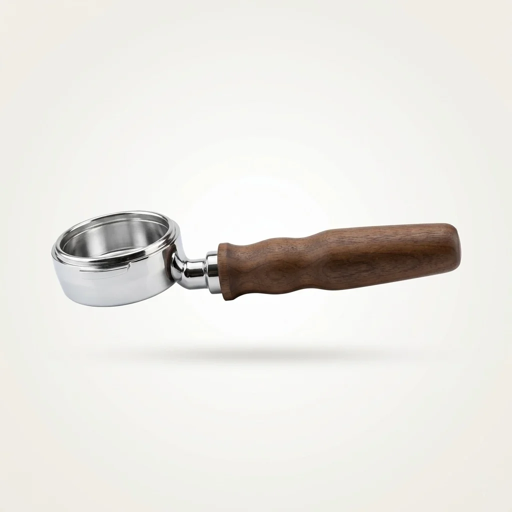ידית בוטומלס (Bottomless Portafilter) E61 עם ידית עץ אגוז. עיצוב פרימיום. תוצרת איטליה.