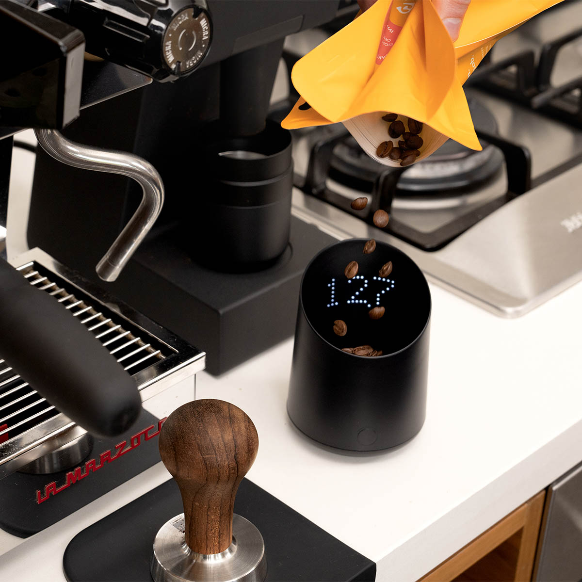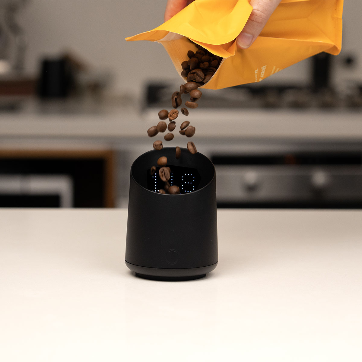 דיוק: 0.1 גר' | שקילה עד: 99.9 גר' | קיבולת: ~60 גר' פולים / 120 מ"ל | חומר: Tritan (מאושר למזון, עמיד עד 100°C) | בטריה: 3.7V / 400mAh, USB-C | עמידות: IPX-4 (עמיד להתזות, לא לטבילה) | מידות: 80×80×105 מ"מ | משקל: 122 גר' | כיבוי אוטומטי